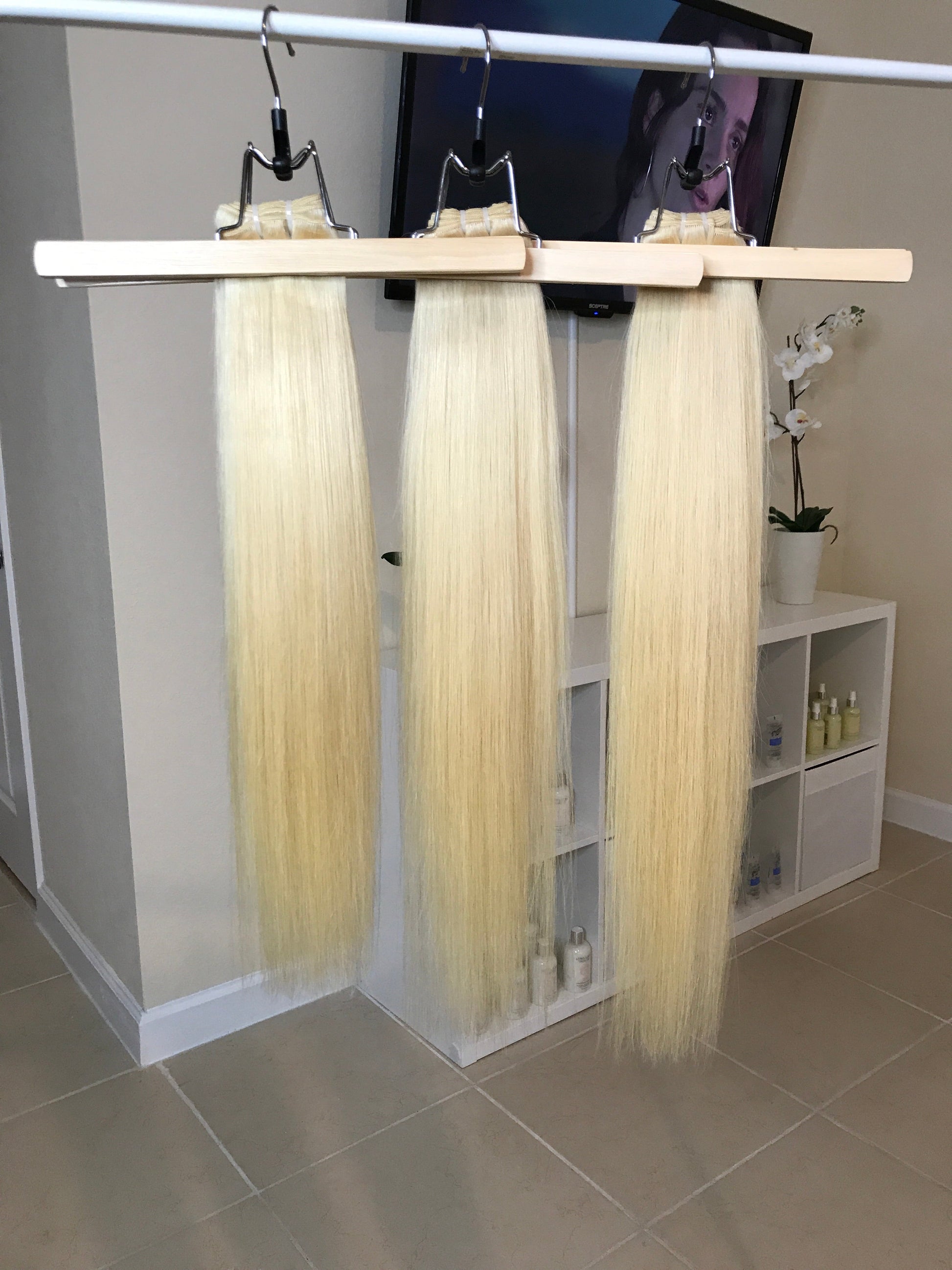 Penny Lane Blonde colors the hair in bright tones like a dream. The texture is soft like silk. We recommend 3 to 4 bundles for a full head.