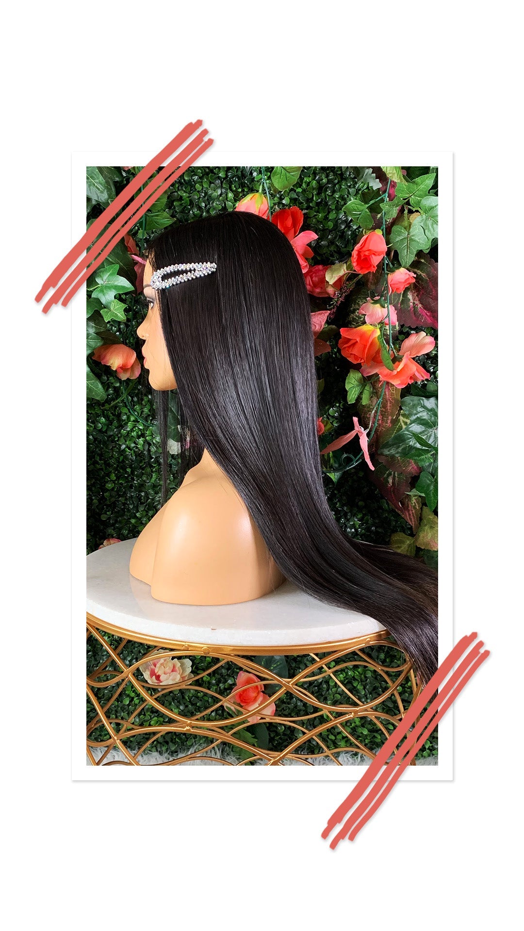 Box includes Wig Care Guide, Bold Hold Wig Tape, Styrofoam Head, Spray Bottle, Paddle Brush and Wig Cap.